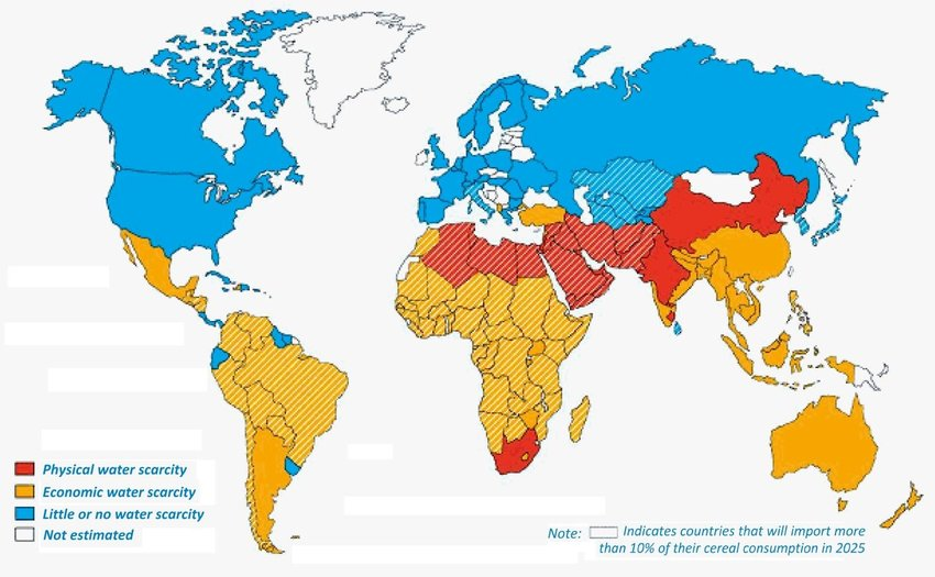 Projected Global Water Scarcity in 2025 (IWMI 2000; Rijsberman 2006)