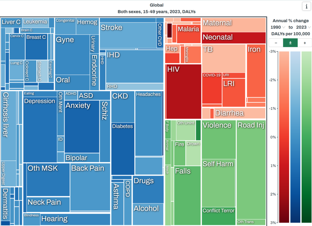 Die weltweit bedeutendste Datengrundlage ist die Global Burden of Disease Study (GBD), die Krankheitslasten für über 200 Länder vergleichbar analysiert. Ergänzend berechnen nationale Studien wie BURDEN 2020 in Deutschland die Krankheitslast auf Länder- und Regionalebene. Die Ergebnisse zeigen, dass sich Art und Umfang der Krankheitslast stark nach Lebensphase, Geschlecht und Region unterscheiden. Während in frühen Lebensphasen angeborene Erkrankungen und Infektionen dominieren, prägen im Erwachsenenalter vor allem chronische, nichtübertragbare Krankheiten wie Herz-Kreislauf-Erkrankungen, Krebs oder psychische Störungen die Krankheitslast.